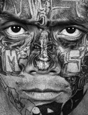 La segunda exposición era de Isabel Muñoz sobre las Maras salvadoreñas, donde destacaban los retratos de gran tamaño en los que los tatuajes de los miembros de las pandillas eran los protagonistas. Miradas frías y tatuajes por todo el cuerpo en un blanco y negro que acentúa la dureza de esta gente, para la cual ni la vida de las personas ni la suya misma tiene ningún valor.