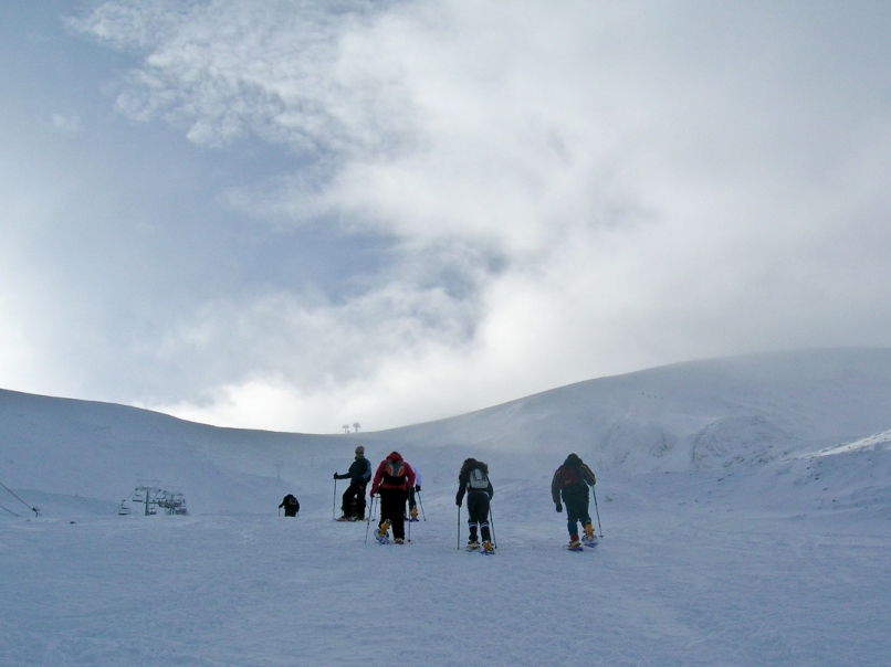 El lado negativo fue que parte del recorrido lo realizas por las propias pistas de la estación y tienes que andar bastante al loro con los esquiadores, sobre todo si tienes que cruzar una de las pista. Por otro lado, esto también nos hizo posible que tras la subida recuperáramos fuerzas en el bar de la cota 1.800 junto a una chimenea, ¡Qué gustazo!