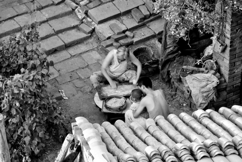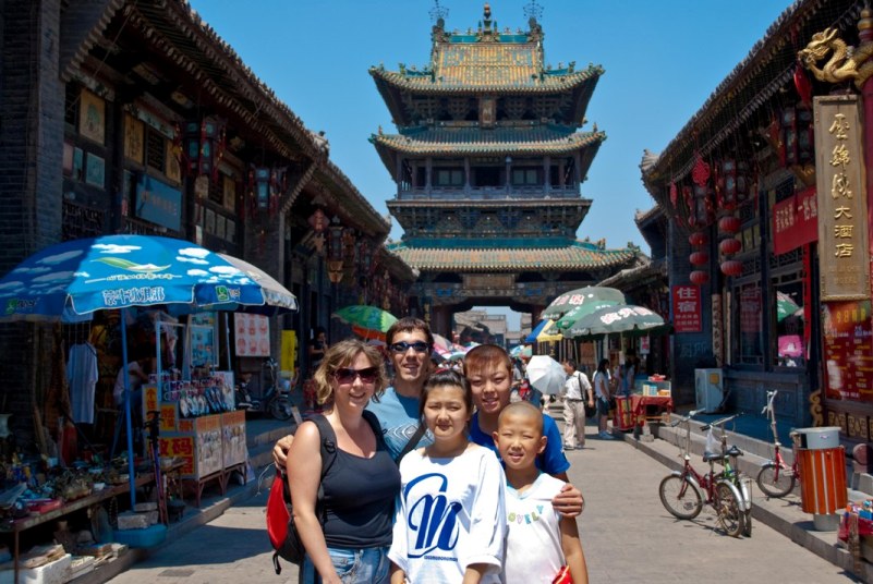 Nada más dar dos pasos fuera del hostal dos chicas jóvenes con un niño que iban en moto (si, tres personas, un bebé entre ellas, y ningún casco) se pararon simplemente para saludarnos y hacerse unas fotos con nosotros. Primer gesto de simpatía de la ciudad y que fue la sensación global con la que abandonaríamos Pingyao.