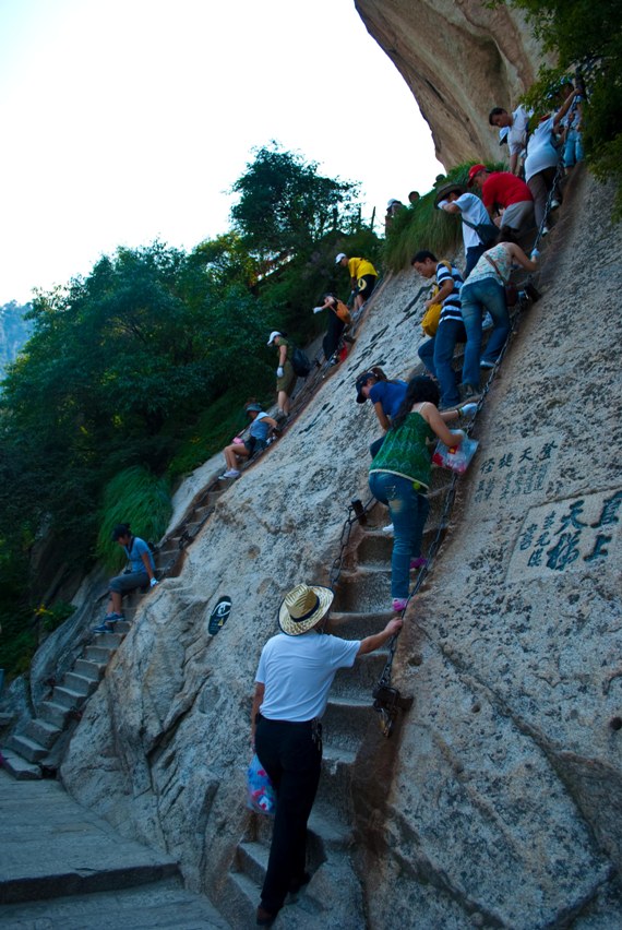 ¿Y todo esto para qué? ¿Qué es Hua Shan? Pues es nada más y nada menos que uno de las 5 montañas sagradas de China, teniendo un templo taoísta en su cima (y bares y hasta un hotel) y famosa también debido a la peligrosidad del ascenso. 13 personas nos dijeron nuestros guías particulares que habían muerto el año anterior en su cima, y se sospecha que el gobierno Chino oculta las cifras reales (para variar).