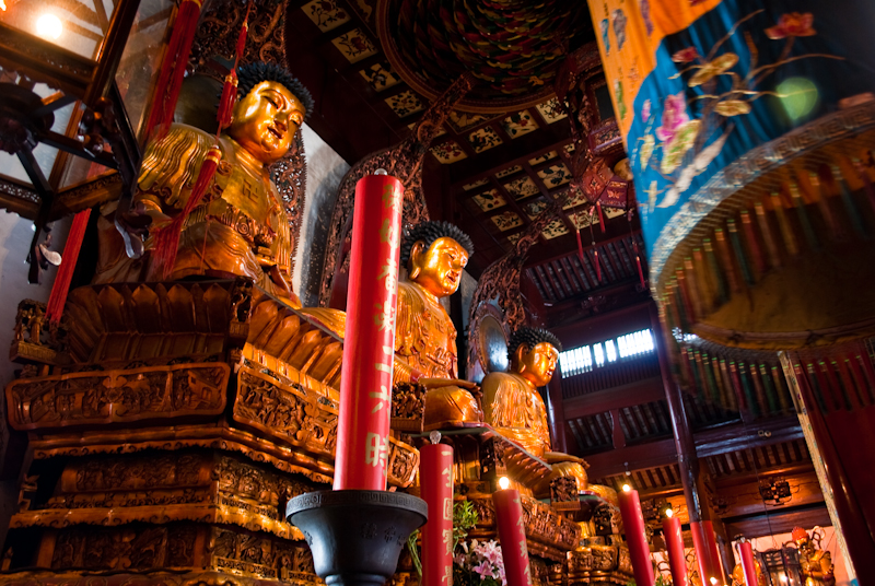 Es una constante en el viaje a China, hay que visitar templos. Cuando viajo a cualquier ciudad alguno de sus atractivos siempre es una iglesia, y como no, pues se visita. ¿Qué sucede en China? En vez de iglesias hay templos. Puede que sea por lo diferentes que son a lo que estoy acostumbrado, puede que también haya notado mayor diferencia entre ellos (hay de diferentes religiones) de la que hay entre las iglesias, pero son sin duda son lugares en los que disfruto. Como no, Shanghai, rebosa templos.